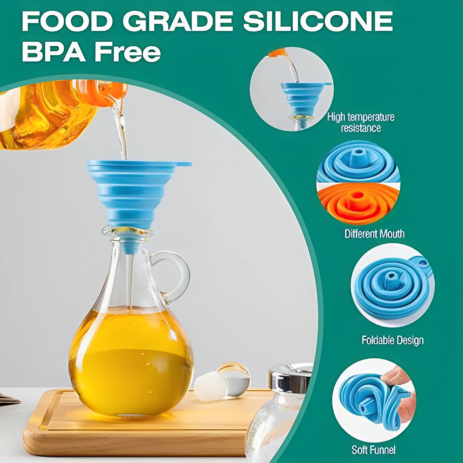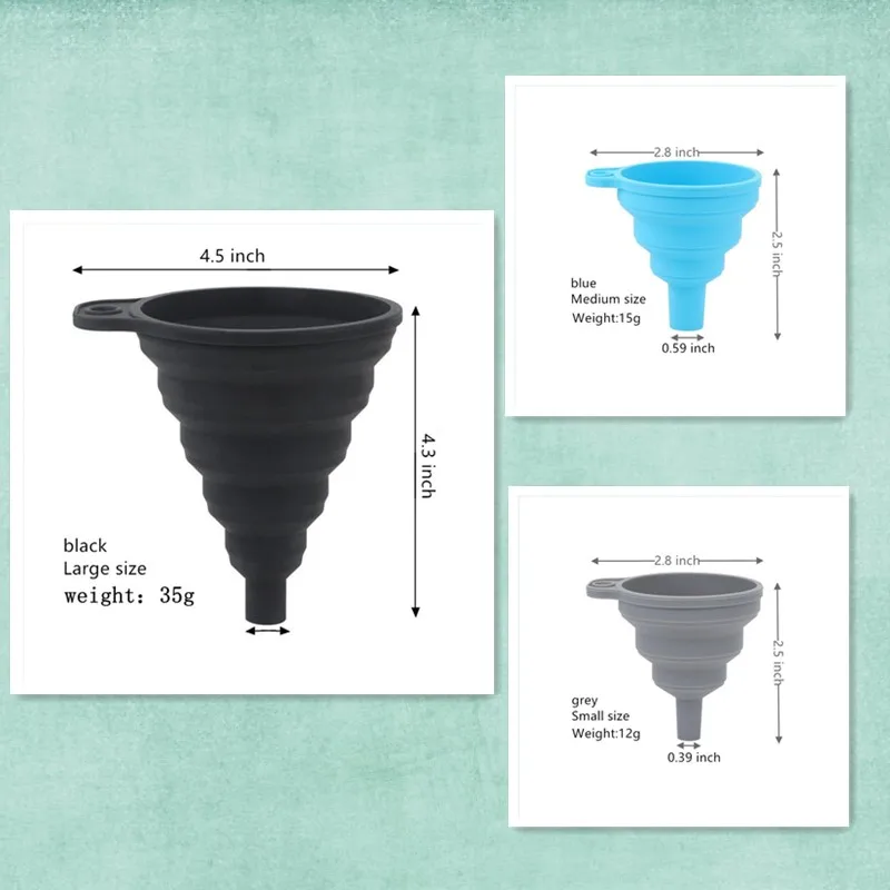 • Package Content: 1/2/3 Pcs of silicone collapsible funnels in assorted sizes and colors.