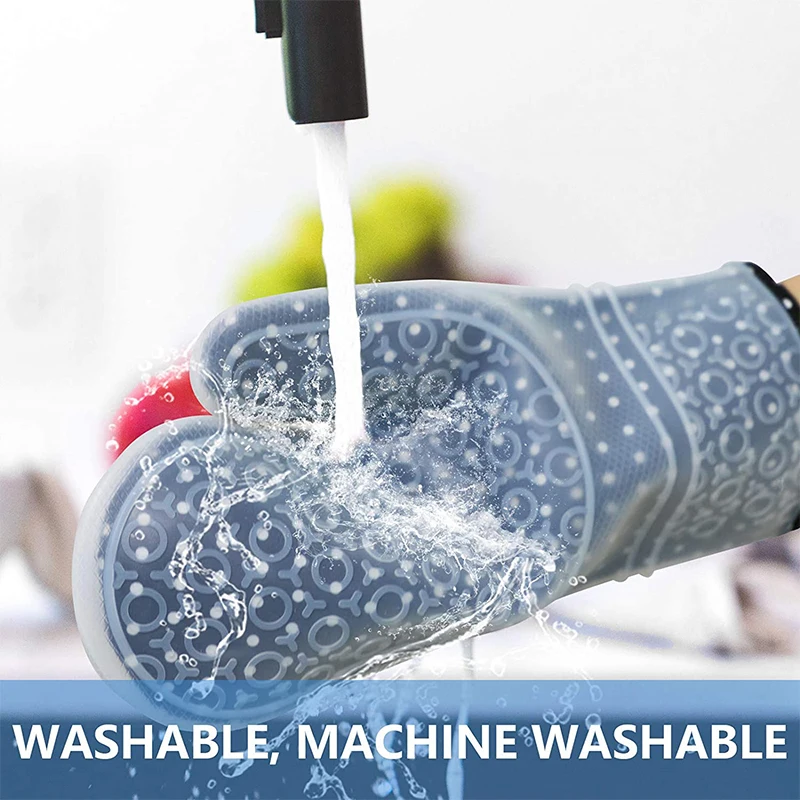 Introducing the Double Layer Silicone Oven Mitts, designed for safe and comfortable handling of hot kitchen items. These non-slip, heat-resistant gloves provide excellent protection while cooking or baking.