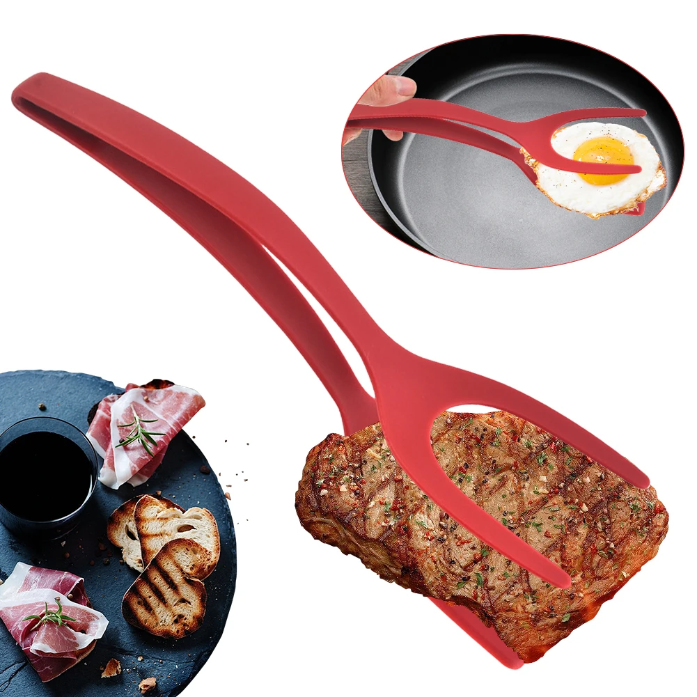 Shovel Clip Silicone Grip Flip Tongs Egg Steak Spatula Tongs Clamp Cooking Tool