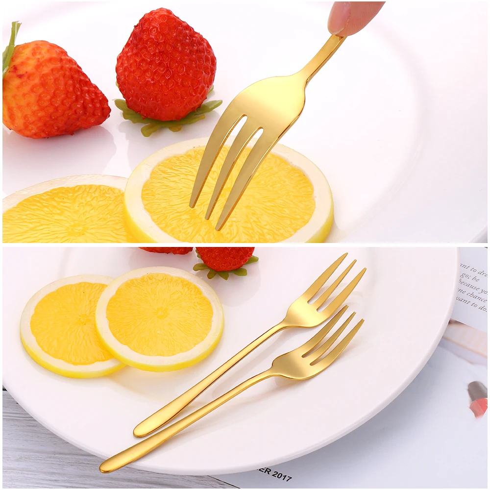Stainless Steel Tea Forks Set 1/4/5/6Pcs Gold Mirror Polished Cutlery Utensils