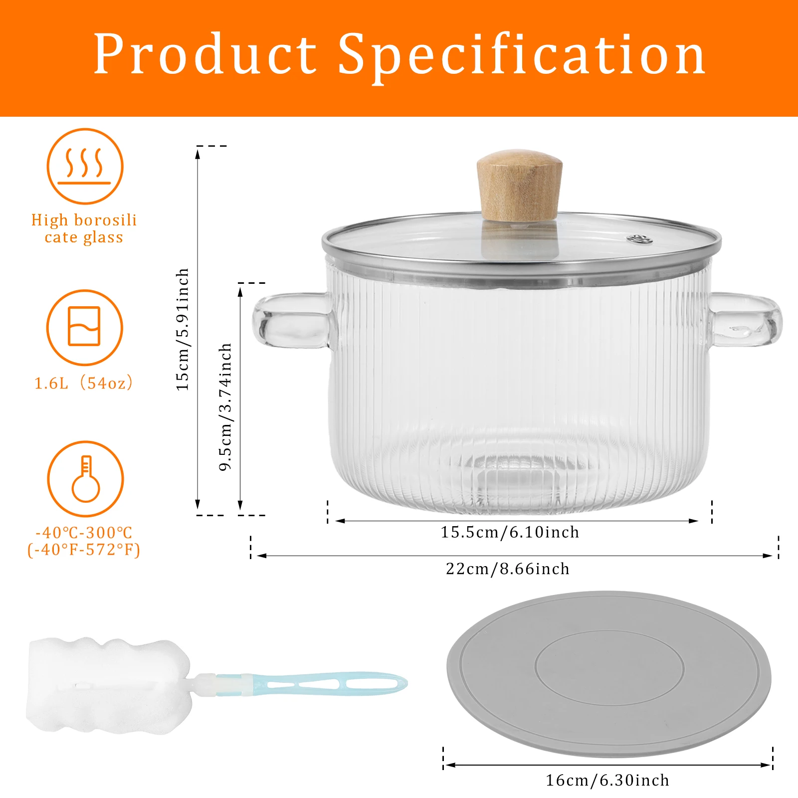 1.6L High Borosilicate Glass Cooking Pot with Lid Clear Saucepan for Stove