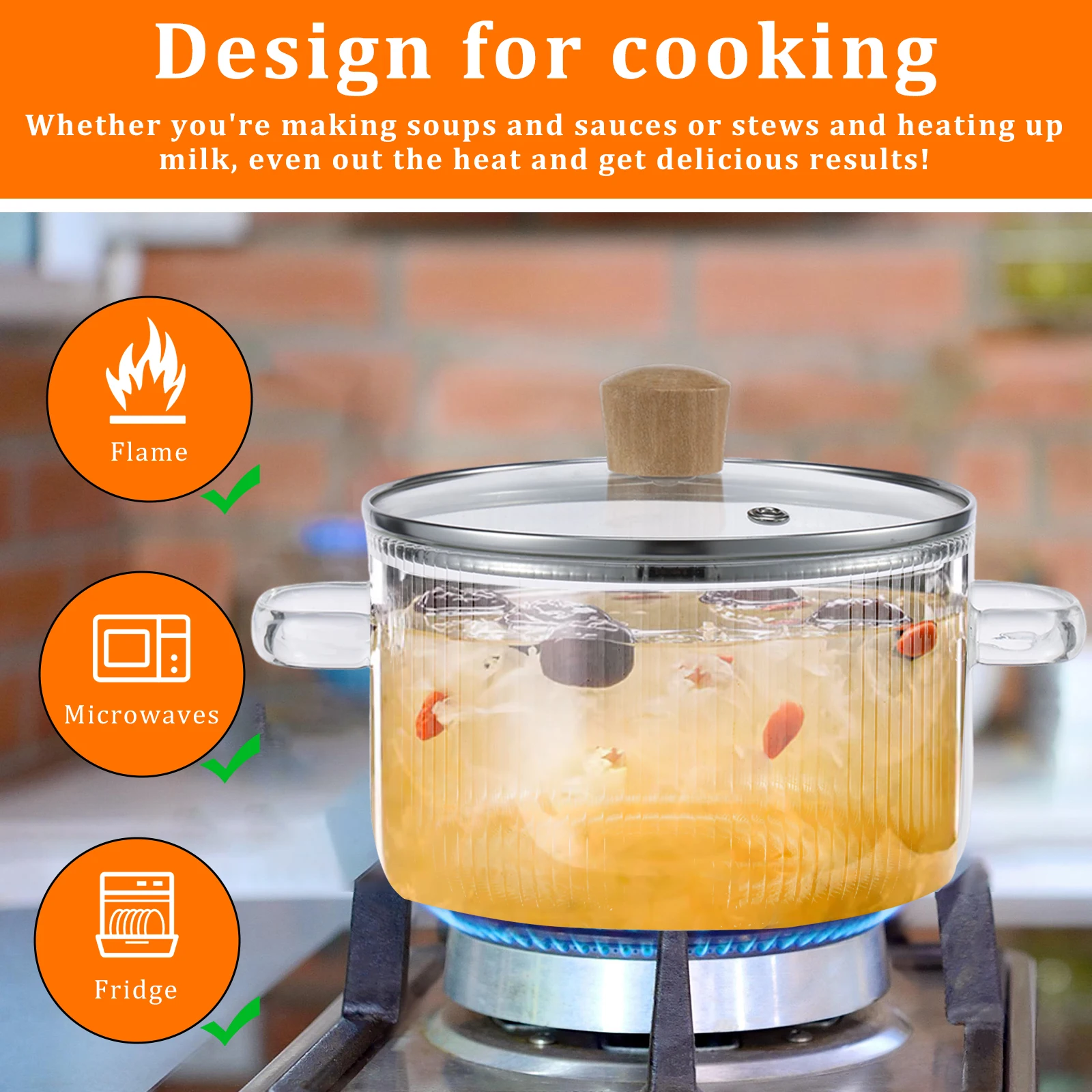 This 1.6L High Borosilicate Glass Cooking Pot is perfect for your kitchen needs. Designed for use on both gas and induction cookers, this clear saucepan allows you to monitor your cooking easily.