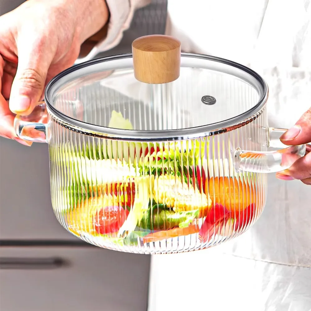 This 1.6L high borosilicate glass saucepan features a transparent design and a binaural handle, making it ideal for cooking noodles and other dishes. Its heat-resistant properties ensure safe cooking, while the clear glass allows you to monitor your food as it cooks.