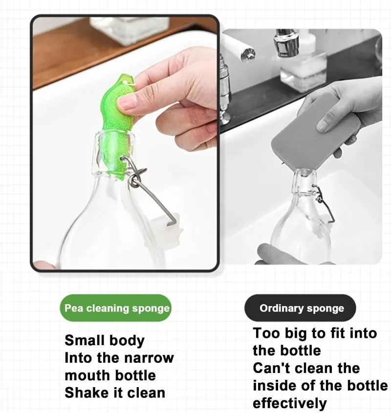 The Pea Cleaning Sponge is a reusable kitchen tool designed for cleaning bottles, cups, and glasses. Made from eco-friendly microfiber, this bottle brush is perfect for maintaining cleanliness in your kitchen.