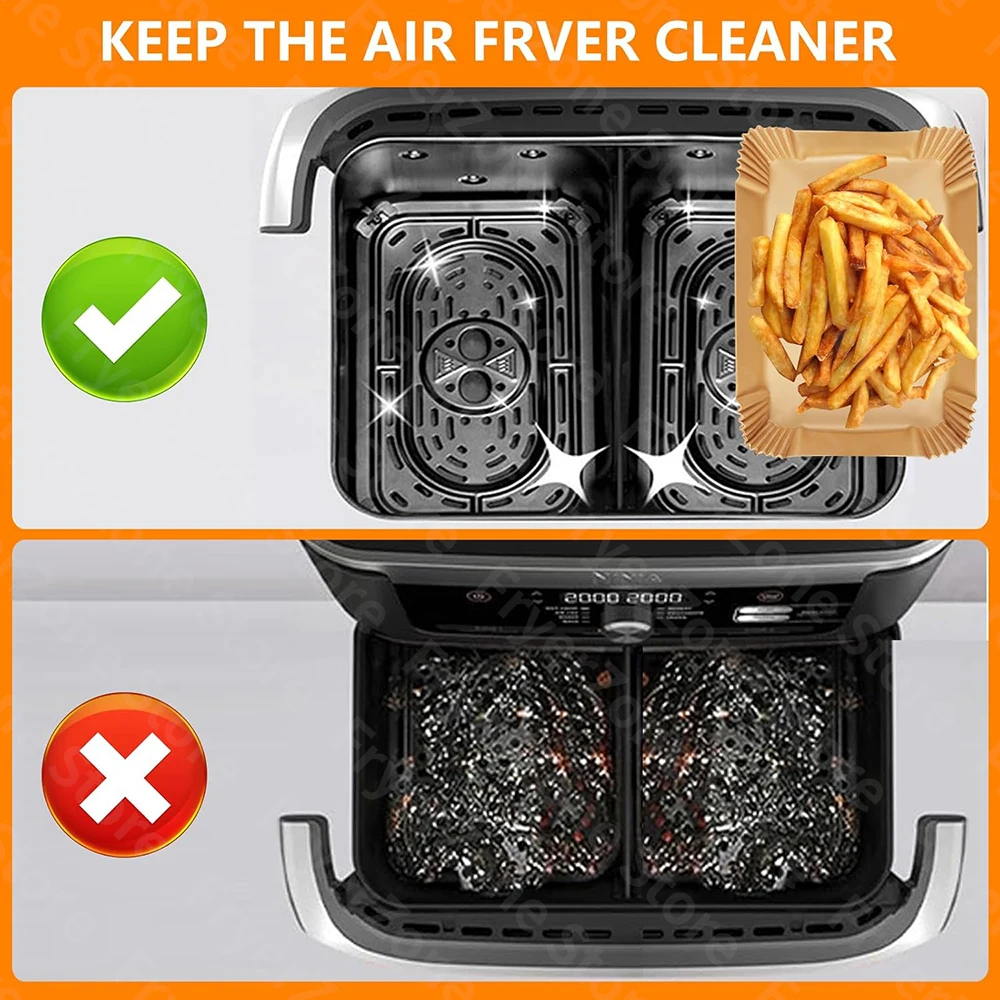 These disposable paper liners are designed for use with the Ninja Foodi Flex Drawer air fryer AF500UK and other compatible models. They help keep your air fryer clean by preventing food remnants from sticking to the grease pan, making cleanup quick and easy. The liners are made from edible double silicone paper that is heat resistant up to 450°C (232°C), ensuring that they do not affect the taste of your food.