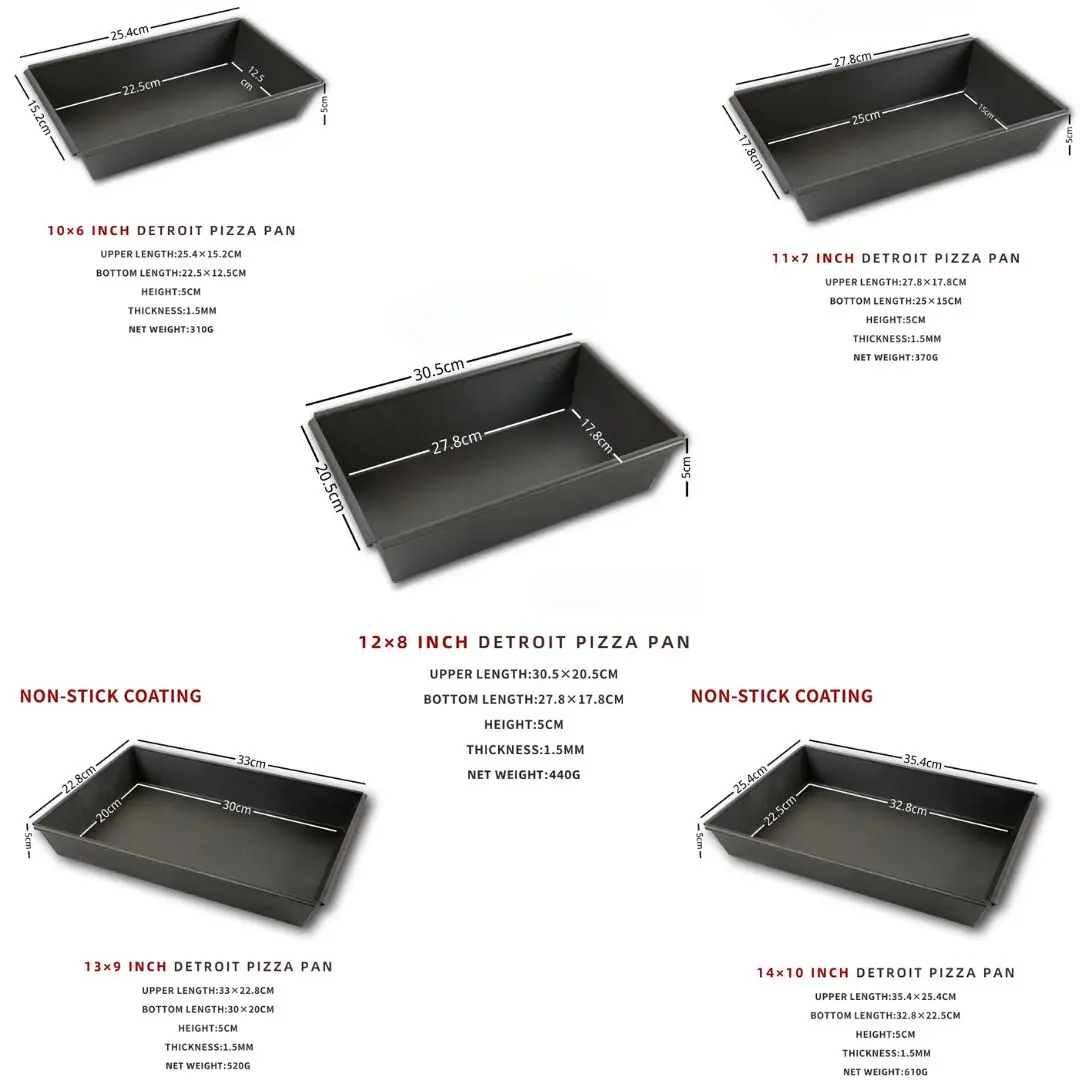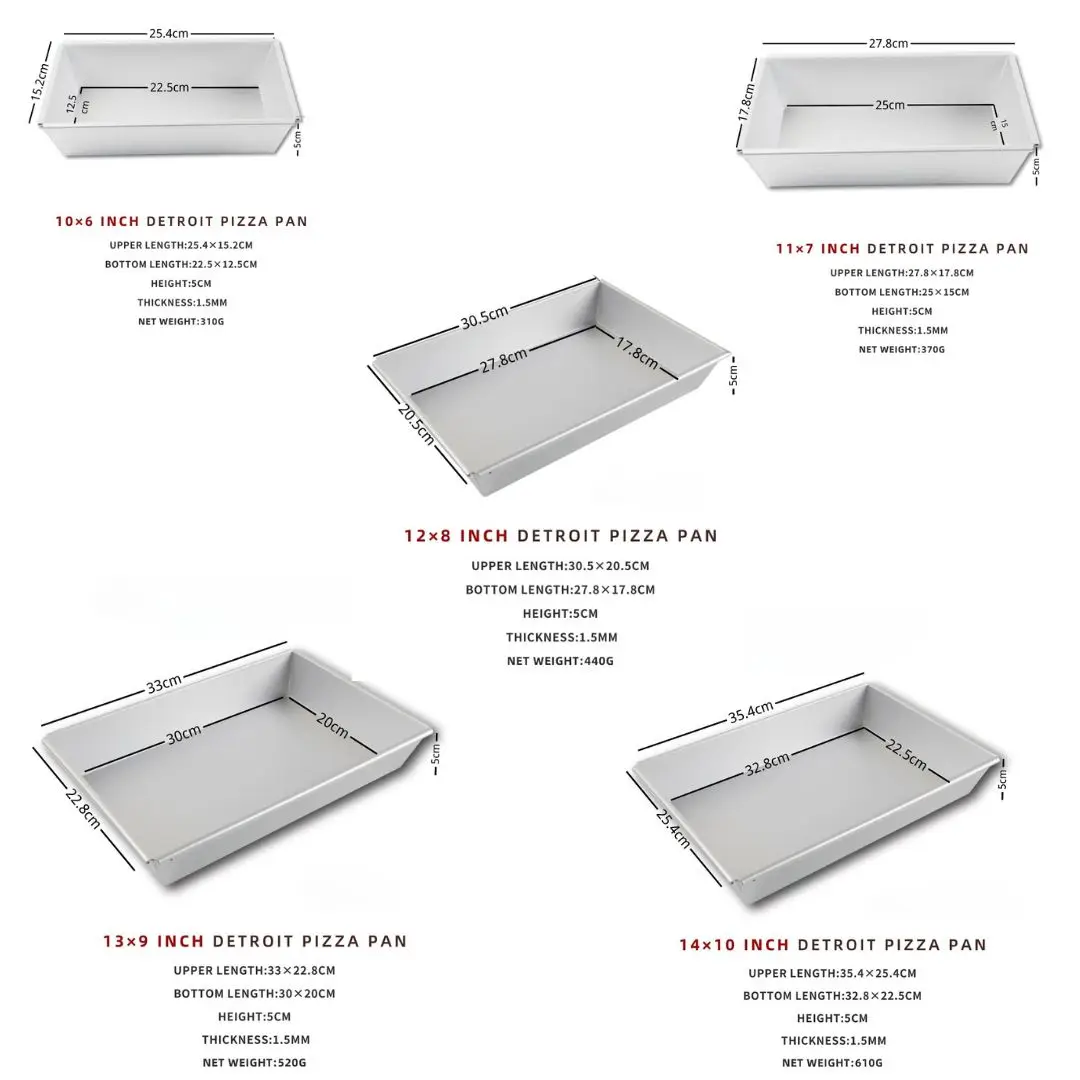 Introducing the 10~14 inch Detroit Style Deep Dish Pizza Pan, perfect for baking delicious deep dish pizzas and other baked goods. This square baking pan is designed for both home cooks and professional chefs, providing excellent heat distribution for perfectly baked dishes.