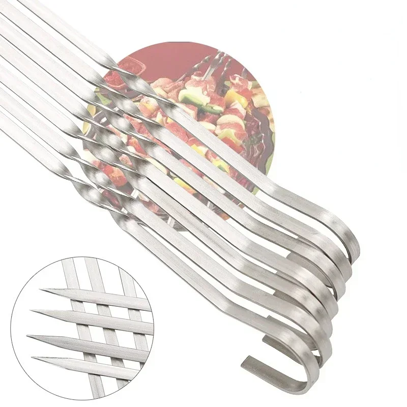 10pcs Stainless Steel BBQ Skewers Sticks for Meat Vegetables Outdoor Cooking