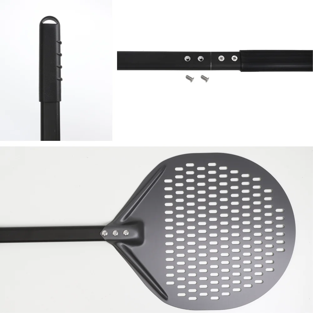 - 1 x 12 Inch Aluminum Perforated Pizza Shovel Peel with Detachable Handle.