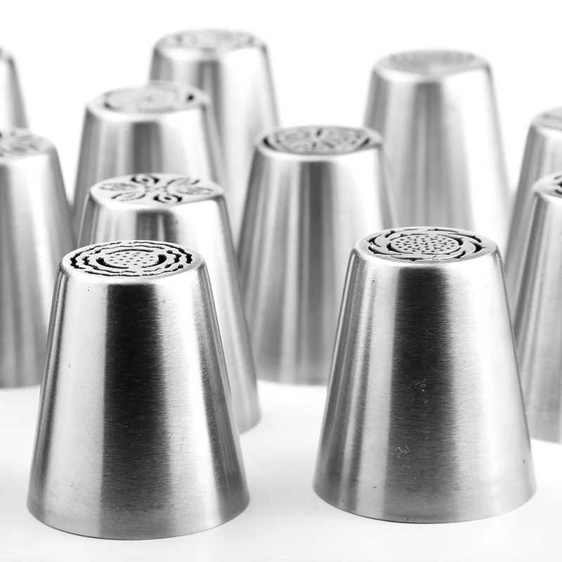 Enhance your cake decorating skills with these 14 styles of Russian icing piping nozzles. Perfect for creating beautiful rose flowers and intricate designs on your pastries and cakes, these nozzles are essential tools for any baking enthusiast.