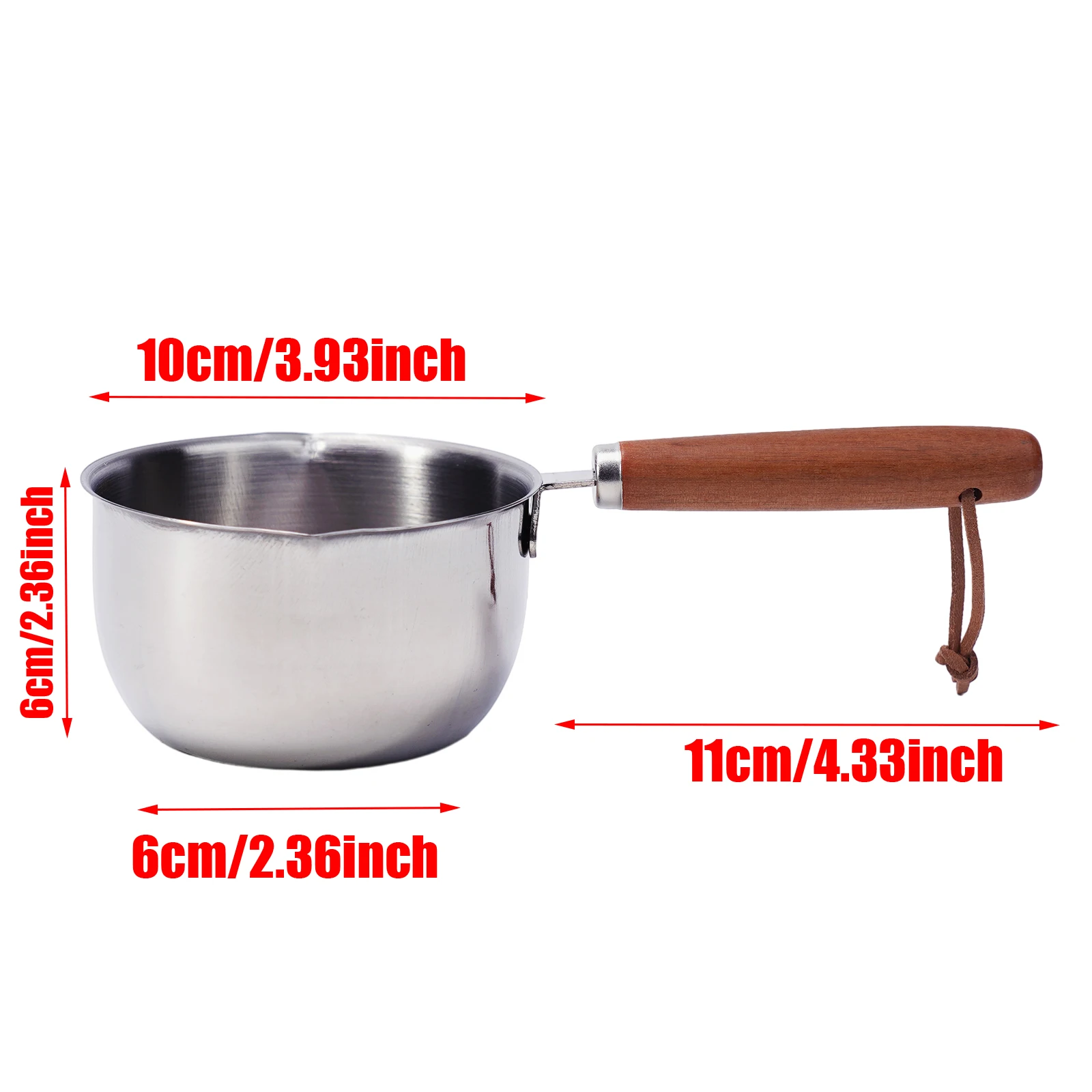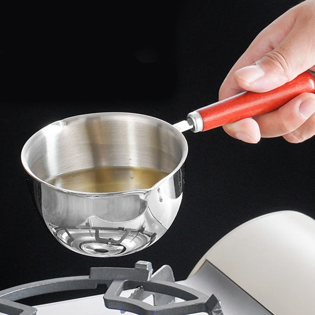 Stainless Steel Oil Pot with Wooden Handle Mini Soup Milk Pot 150ML 300ML 500ML