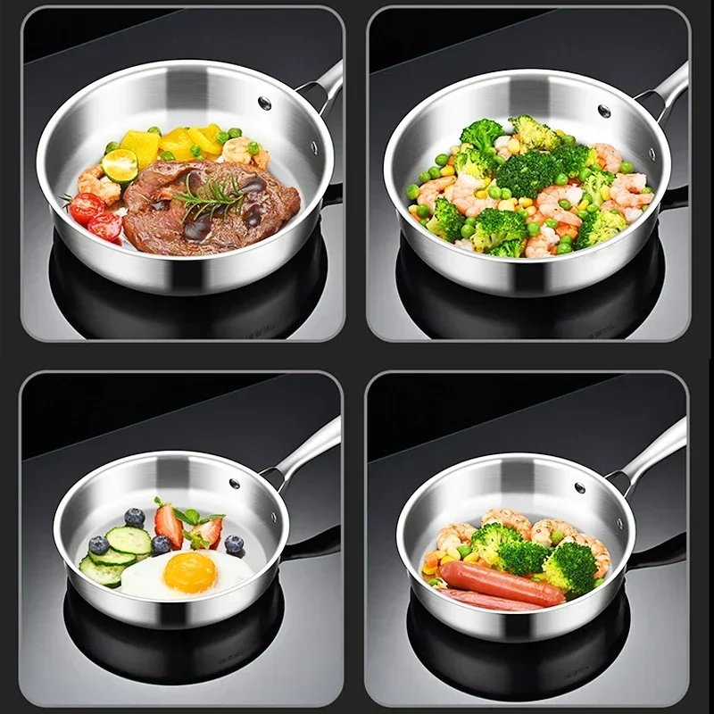 16cm 20cm Frying Pan Stainless Steel Non Coated Flat Bottom Household Cooking