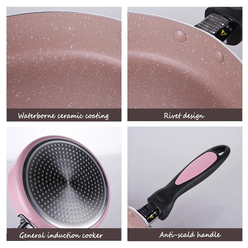 The 18-20cm Pink Omelet Pan is designed for making delicious breakfasts such as eggs, ham, and pancakes. This creative non-stick frying pan allows for cooking without oil smoke, making it a healthy choice for your kitchen.