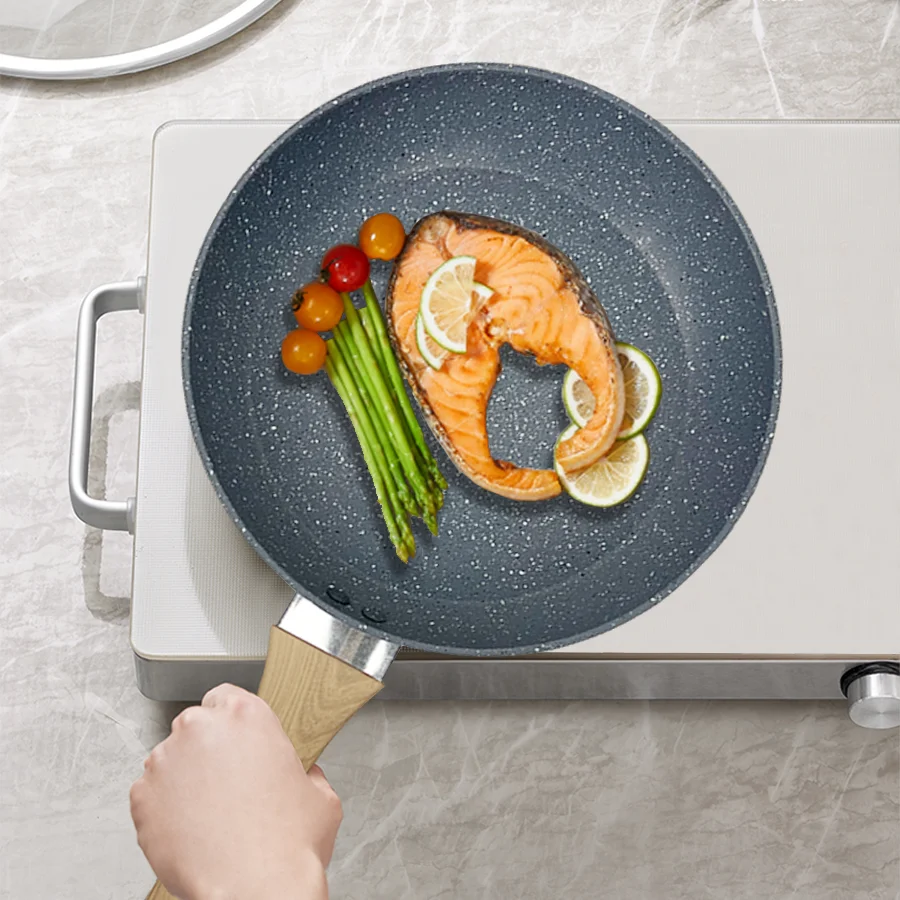 18 24 28cm Nonstick Frying Pan with Wooden Handle Cooking Pan Kitchen Cookware