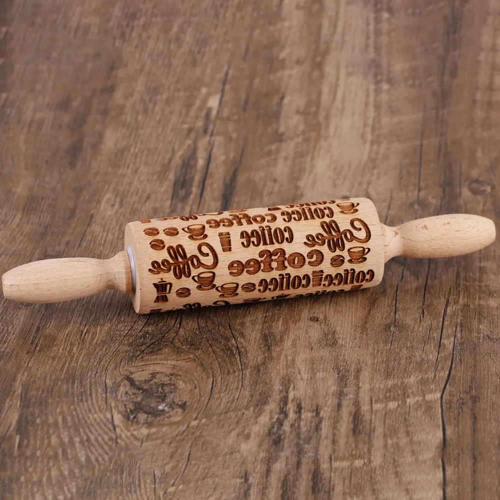 Introducing the 10-inch Wooden Embossed Rolling Pin, designed with a beautiful Coffee Maker Lemon Flower pattern, perfect for all your baking needs.