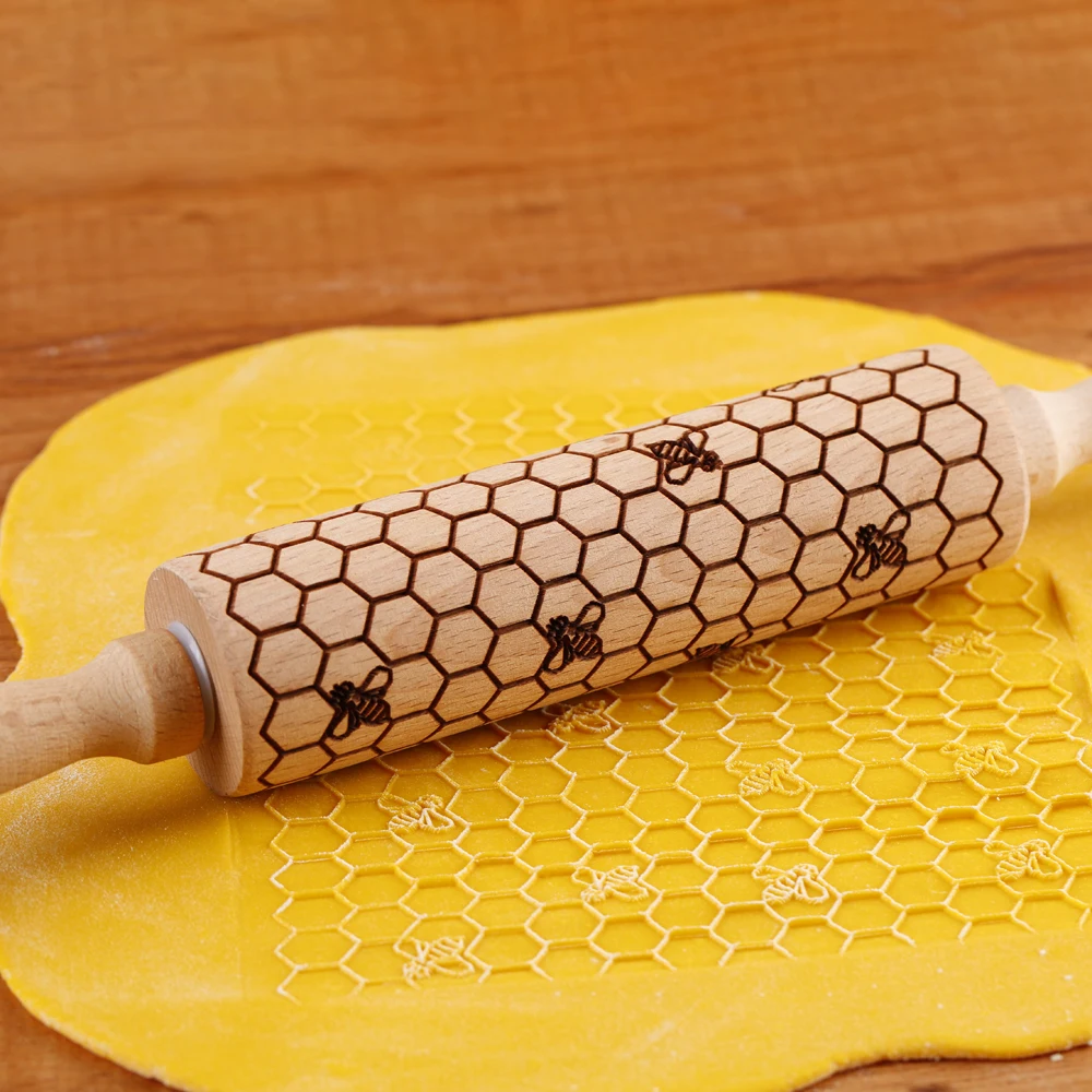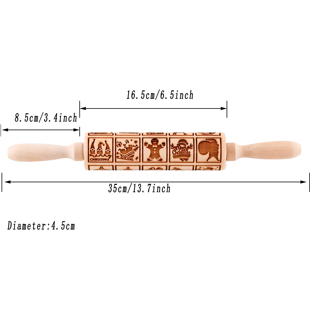 Introducing the 13.7-inch Christmas Wooden Embossed Rolling Pin, a perfect baking tool for creating festive pastries and cookies. This rolling pin features intricate Christmas-themed designs that will add a special touch to your holiday baking.