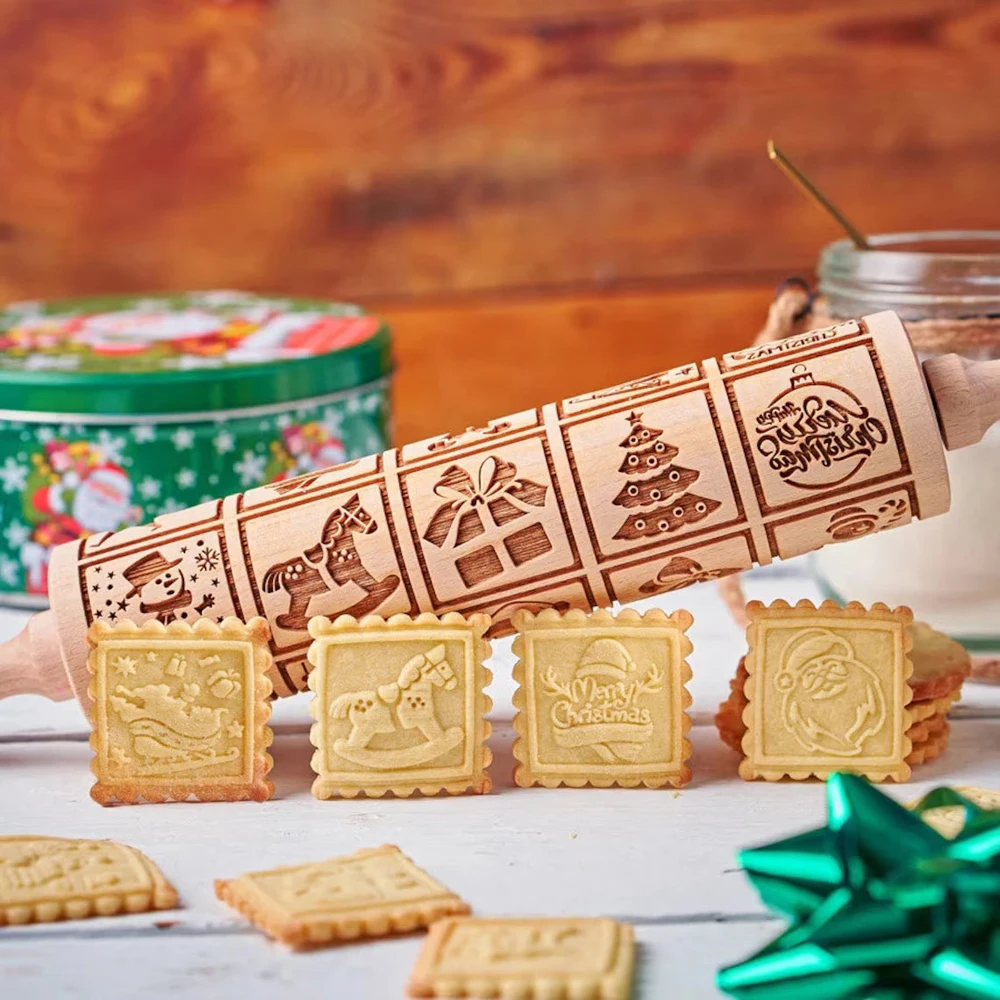 - 1 x Christmas Wooden Embossed Rolling Pin