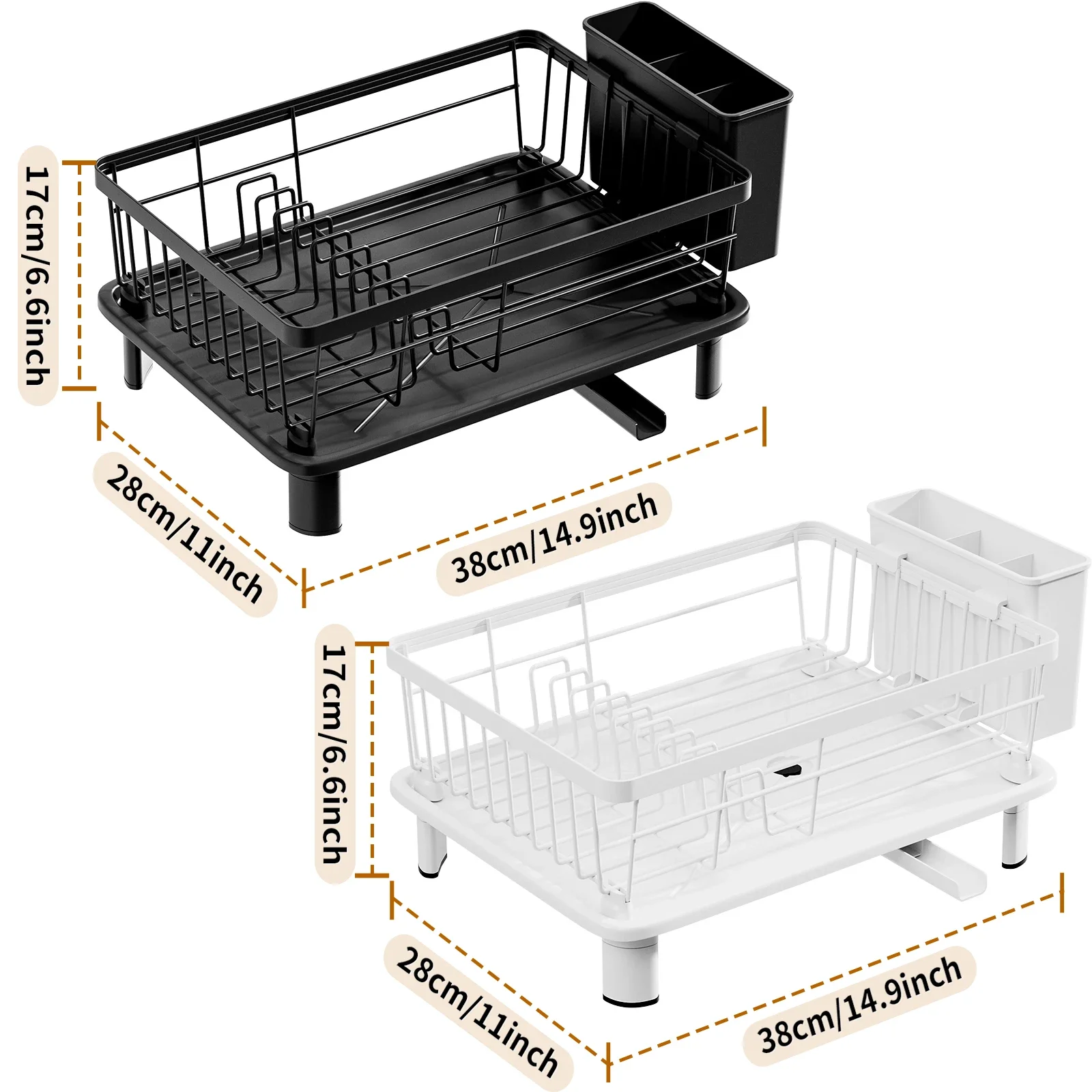 Dish Drying Rack Kitchen Countertop Storage Holder with Drained Board Black White