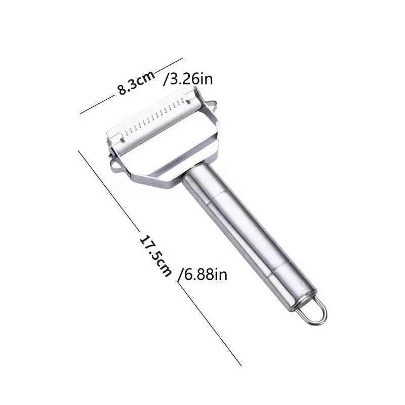 This multifunctional stainless steel peeler and grater is designed for household use, making it easy to scrape potatoes and peel fruits and vegetables efficiently.