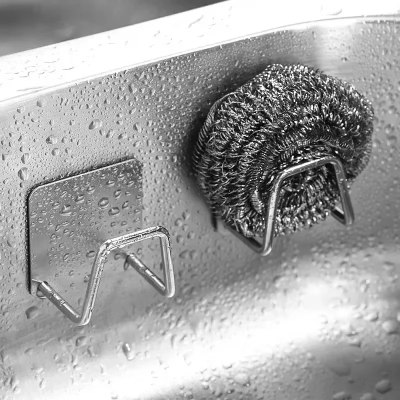 The Stainless Steel Sponge Holder is a self-adhesive kitchen accessory designed to keep your sponges organized and dry. This wall-mounted rack is perfect for optimizing space around your sink.