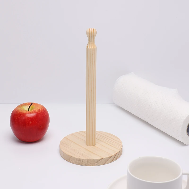 Wooden Standing Paper Towel Holder Kitchen Roll Dispenser for Home Use
