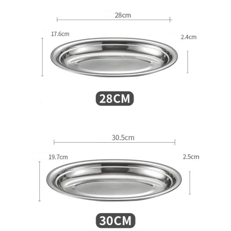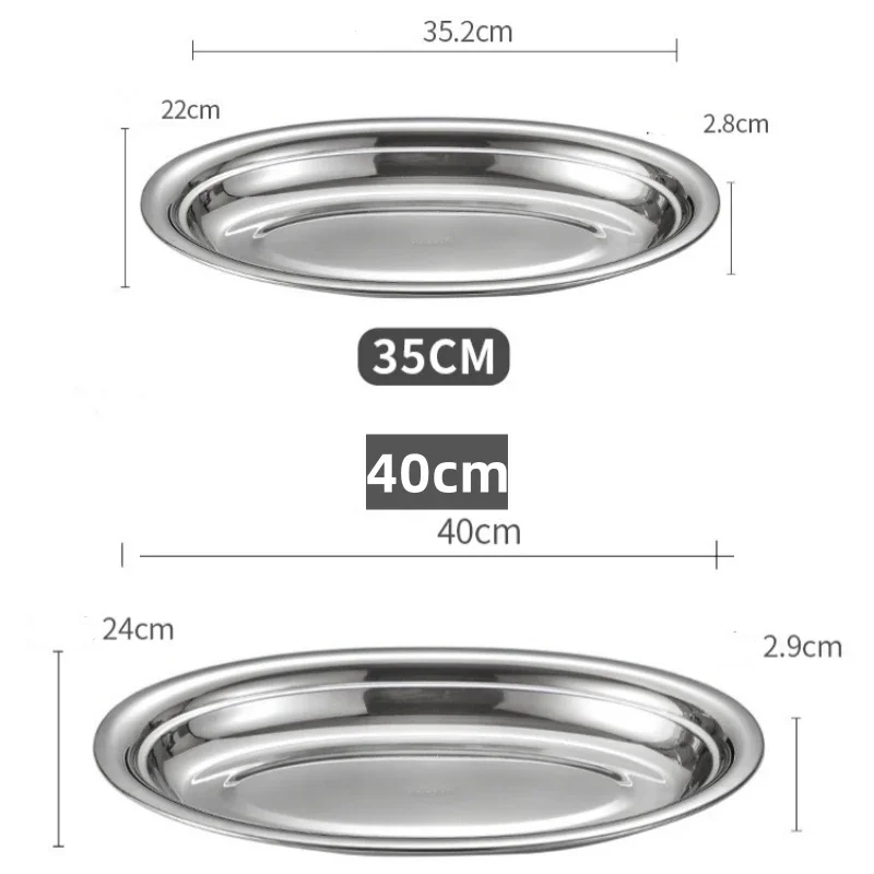This oval fish dish is perfect for serving dinner, desserts, sushi, and snacks. Made from high-quality 304 stainless steel, it features a simple and elegant design that complements any table setting.