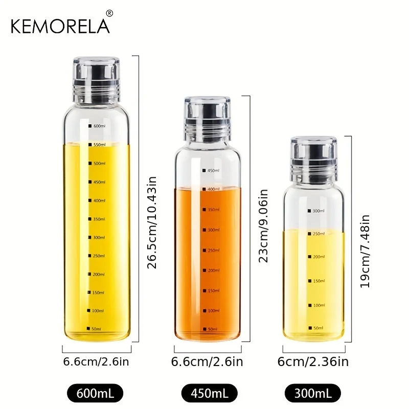 BBQ Cooking Oil Bottle with Scale Glass Oil Can for Air Fryer Sauce 300ML 450ML 600ML