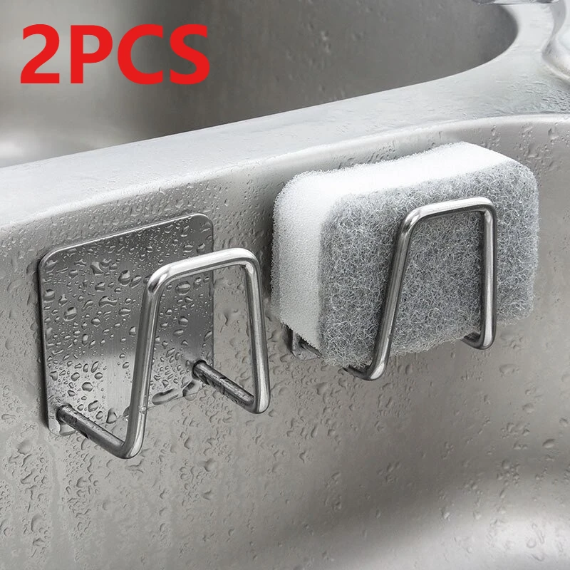 Stainless Steel Sink Sponge Rack Kitchen Supplies Space Saving Design 1/2pcs