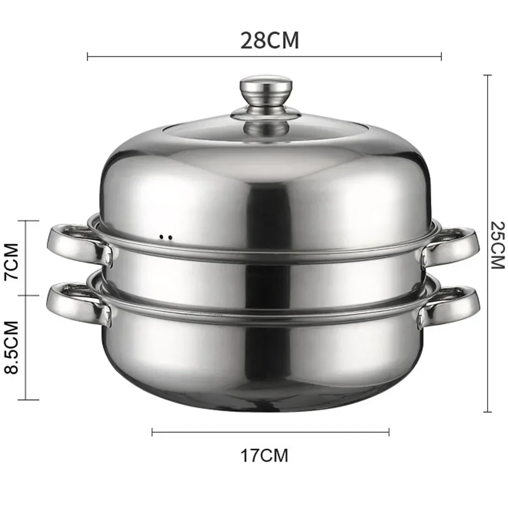 This 2/3 Tier Stainless Steel Steamer Pot is designed for versatile cooking, allowing you to steam a variety of foods efficiently. Made from high-quality stainless steel, it features a durable construction that ensures even heat distribution for optimal cooking results.