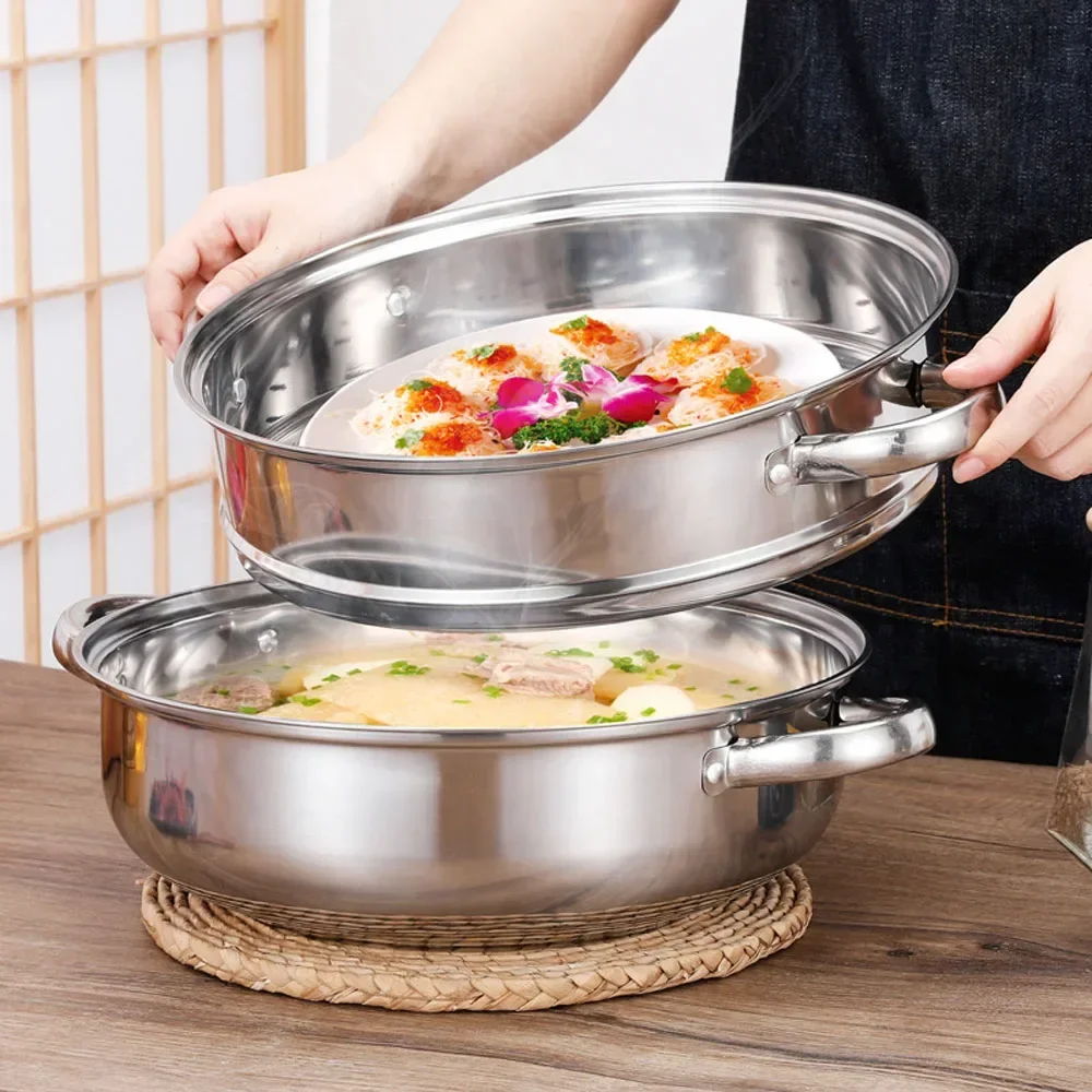 2/3 Tier Stainless Steel Steamer Pot Stackable Pan Insert Multi Layer Cooker