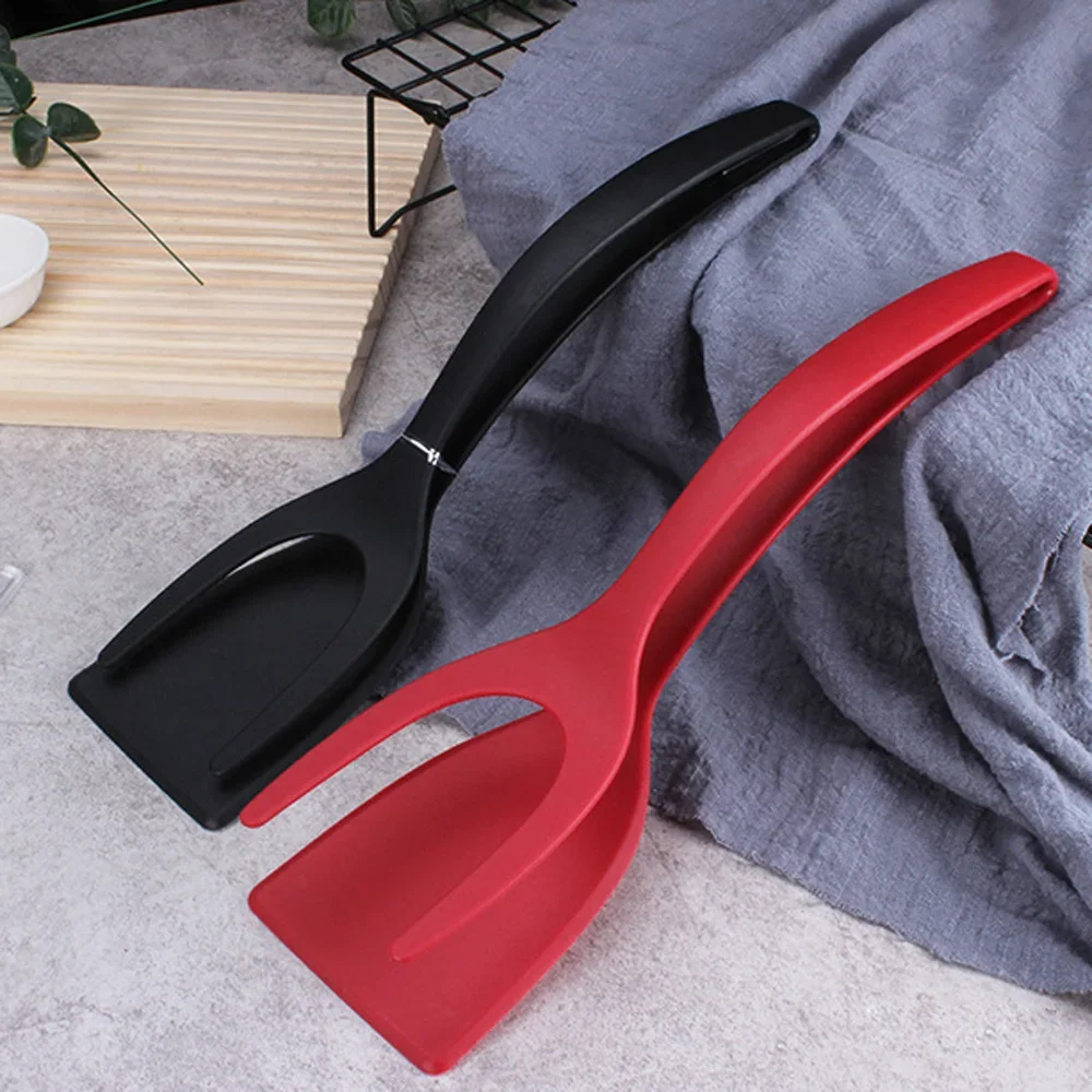 2 In 1 Fried Egg Steak Nylon Grip Flip Tongs Cooking Spatula Tongs Kitchen Tool