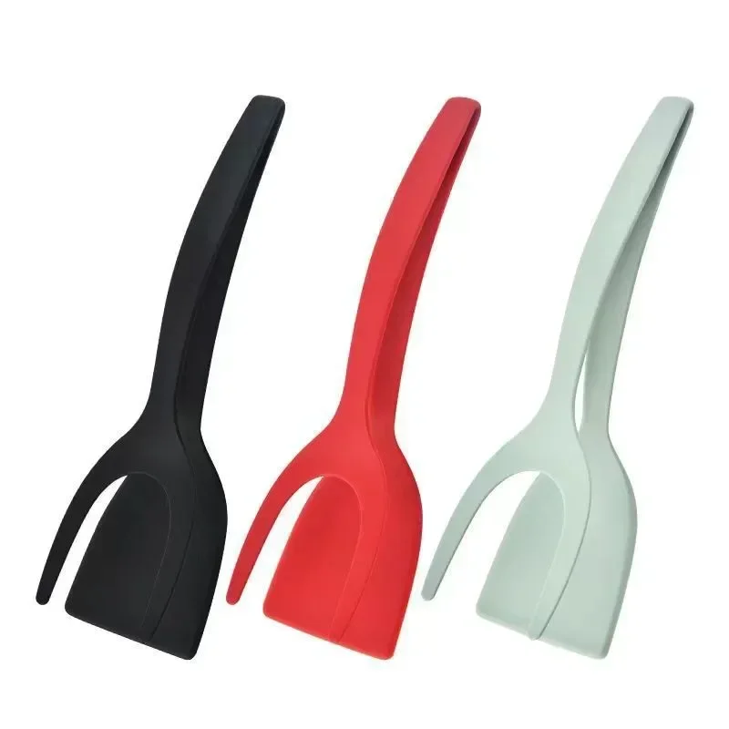 2 In 1 Nylon Grip Flip Tongs Egg Spatula Tongs Steak Spatula Tongs Clamp