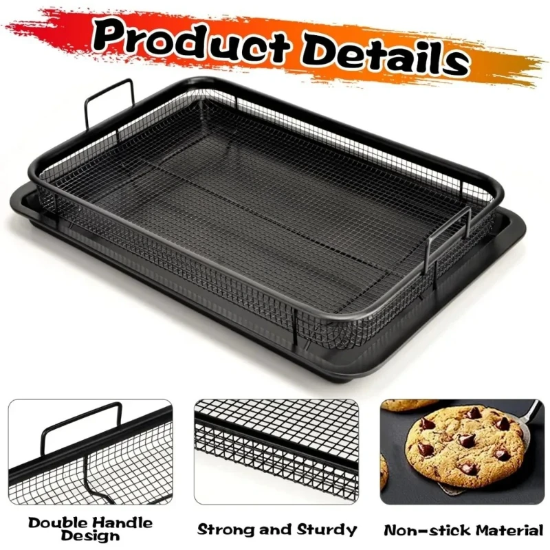 2 in 1 Oven Air Fryer Basket and Tray Oil Frying Baking Pan Non-stick Chips Basket Baking Dish Grill Mesh Kitchen Bakeware Set