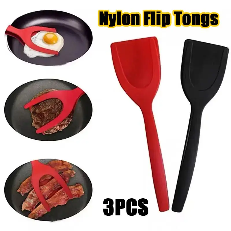 2 in 1 Silicone Clip Spatula Tongs for Frying Steak Pancakes Omelette Kitchen Tool