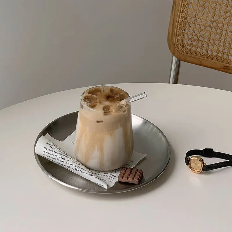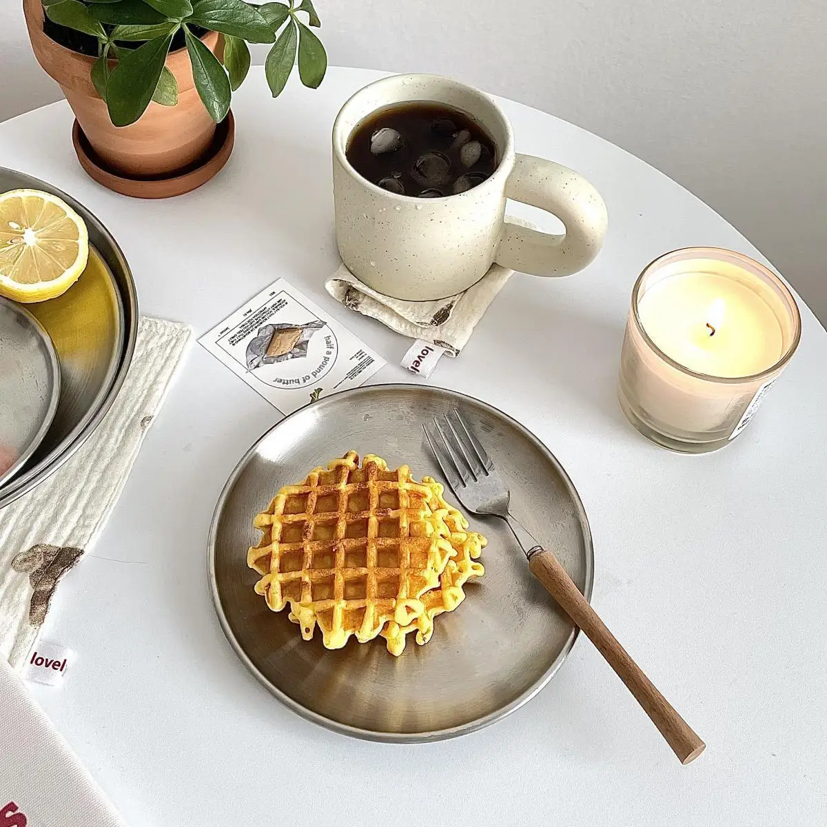Stainless Steel Round Plate Korean Barbecue Snack Bone Bread Tray Kitchen Organizer