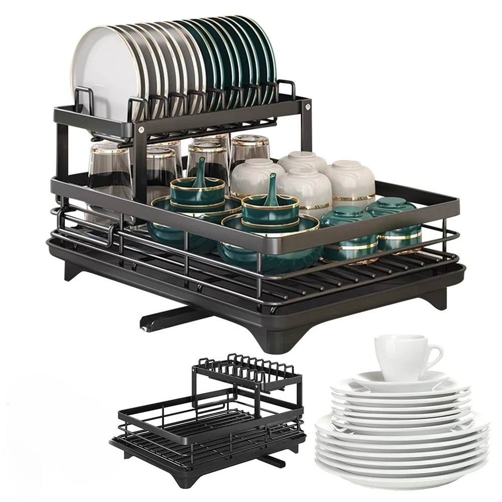 The 2025 Dish Drying Rack is a versatile kitchen accessory designed to efficiently organize and dry your dishes. With its adjustable two-tier design, it provides ample space for plates, bowls, and cutlery, making it an essential addition to any kitchen.