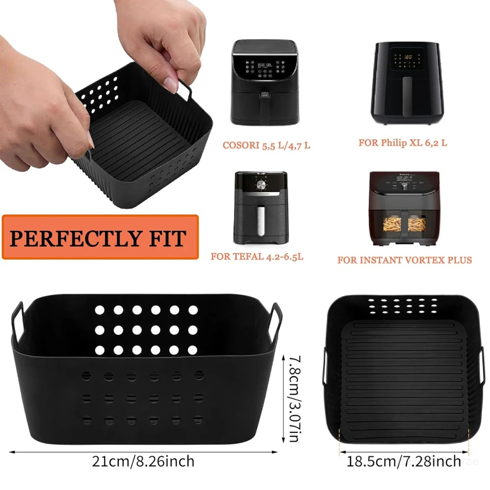 Introducing the 21cm Reusable Square Air Fryer Silicone Liners, perfect for enhancing your air frying experience. These silicone liners are designed to fit most air fryer baskets, making cooking and cleanup easier than ever.