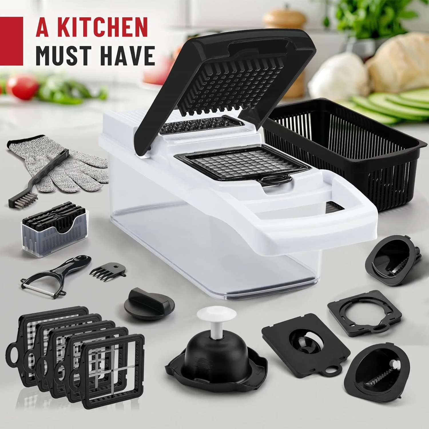 - 13 interchangeable blades for versatile chopping, slicing, and julienning.