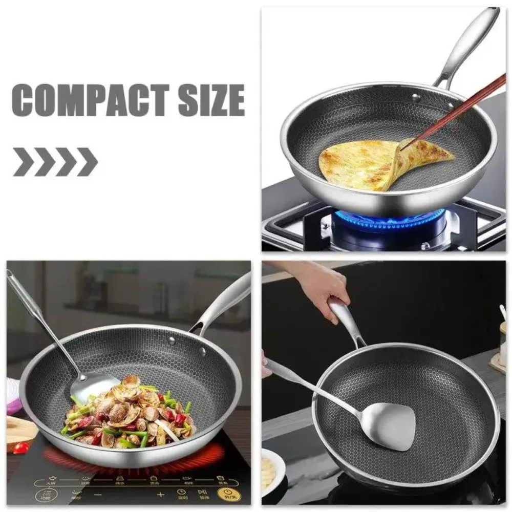26/28/30cm Frying Pan Non-coated Stainless Steel NonStick Pan Multi-functional Thickened Honeycomb Pot Gas Induction Cooker