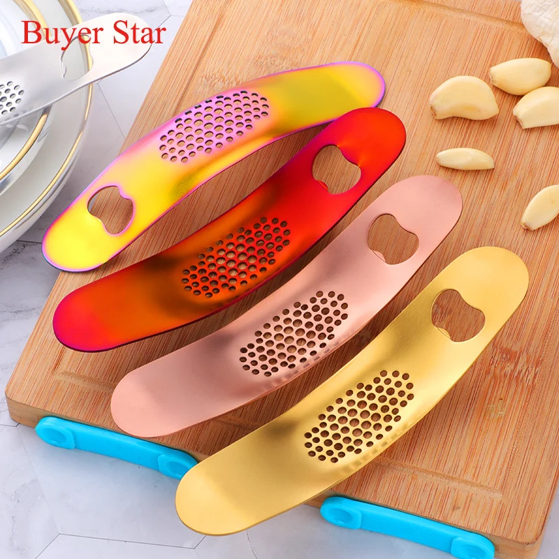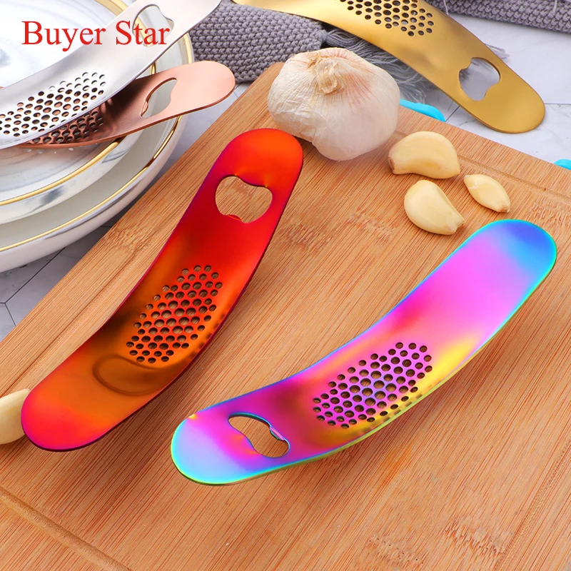 2in1 Gold Stainless Steel Garlic Press Crusher Cooking Tools Kitchen Gadgets