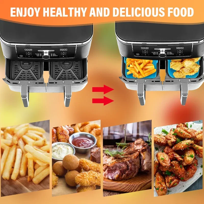 This set includes 2 pieces of silicone trays designed for air fryers, perfect for baking and cooking various dishes. The reusable liners help keep your air fryer clean while providing an eco-friendly alternative to disposable liners.