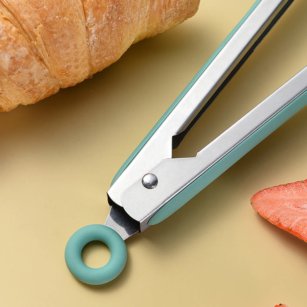 Mini Snack Food Tongs Silicone Stainless Steel Non-slip Kitchen Utensils