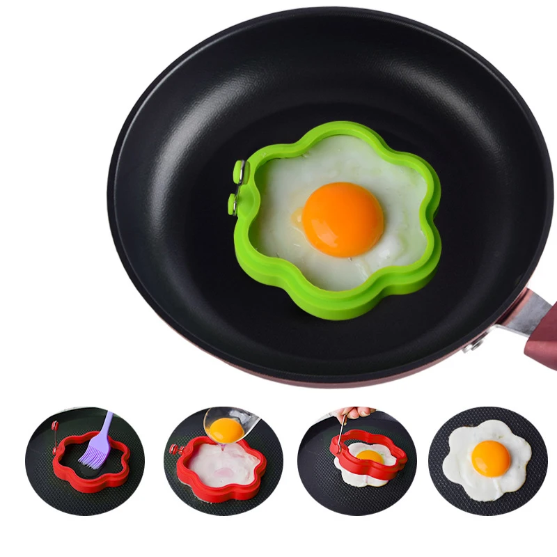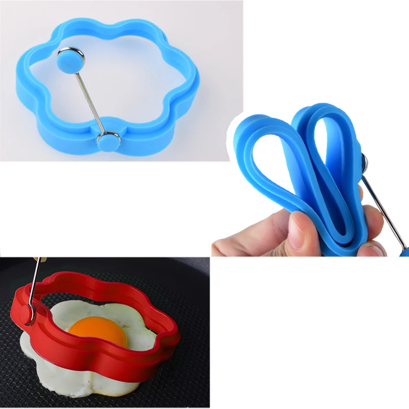 2PCS Cartoon Heart Shaped Silicone Egg Fryer Omelet Pancake Mold Kitchen Tool
