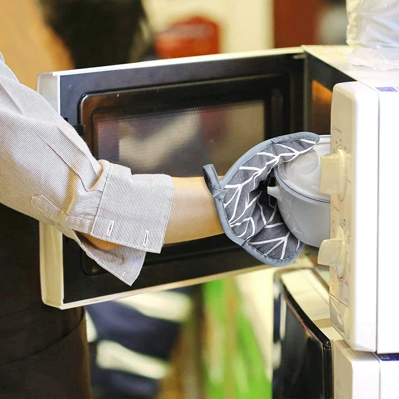 This set includes 2 pieces of kitchen potholders and stove oven gloves, designed to provide heat resistance and a slip-resistant grip while handling hot cookware.