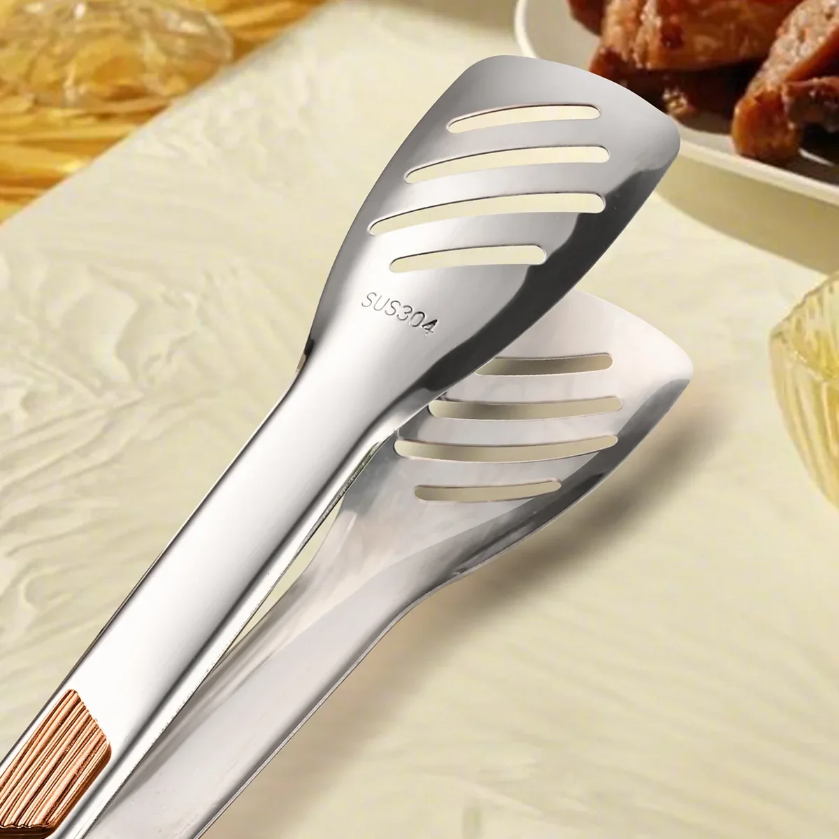2Pcs Kitchen Stainless Steel Food Tongs Barbecue Tongs Meat Salad Clip