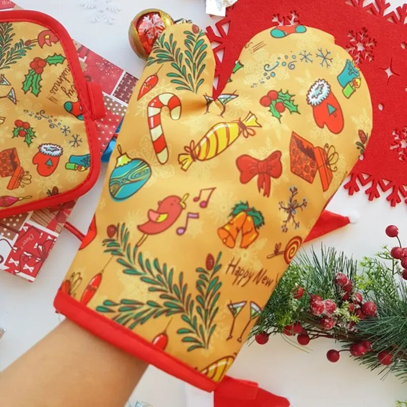 Enhance your kitchen experience with this 2pcs/set Christmas Oven Mitts and Pot Holders Set. Perfect for baking, cooking, and BBQ, these anti-hot gloves provide excellent protection while adding a festive touch to your kitchen.