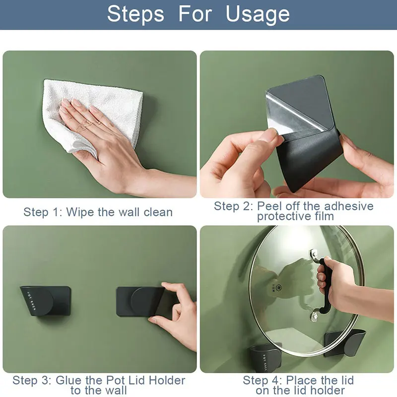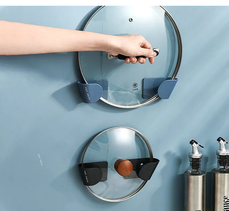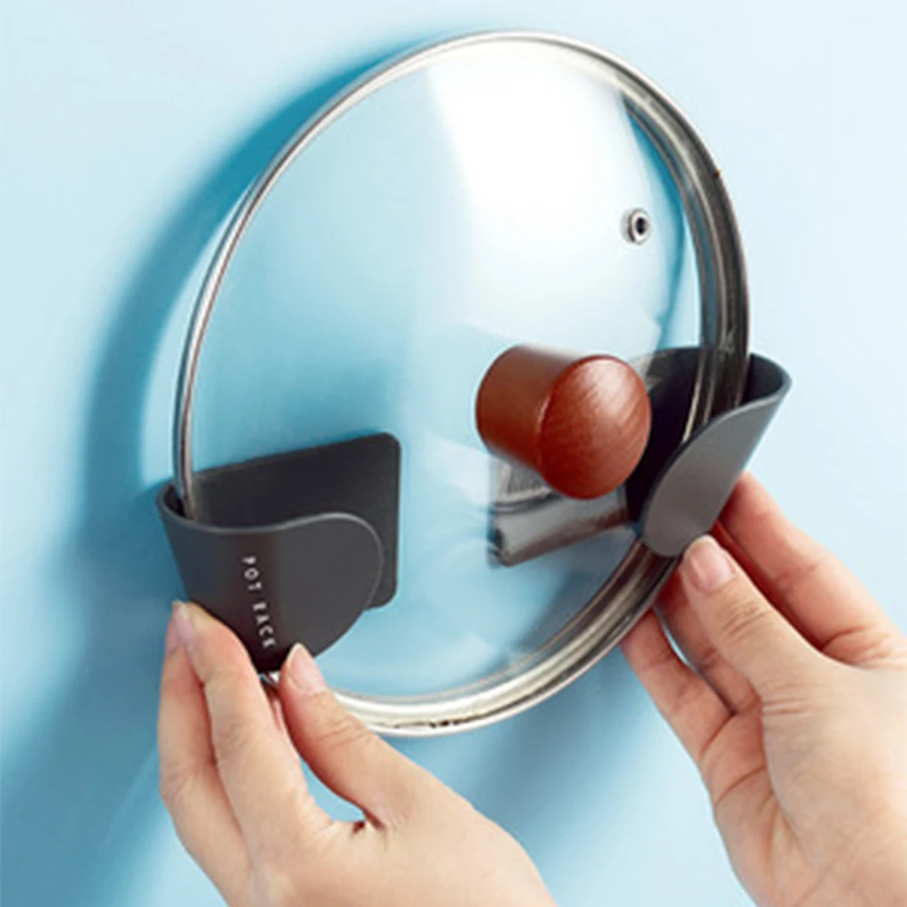 2Pcs Set Pot Lid Holder Self Adhesive Wall Mounted Kitchen Storage Rack
