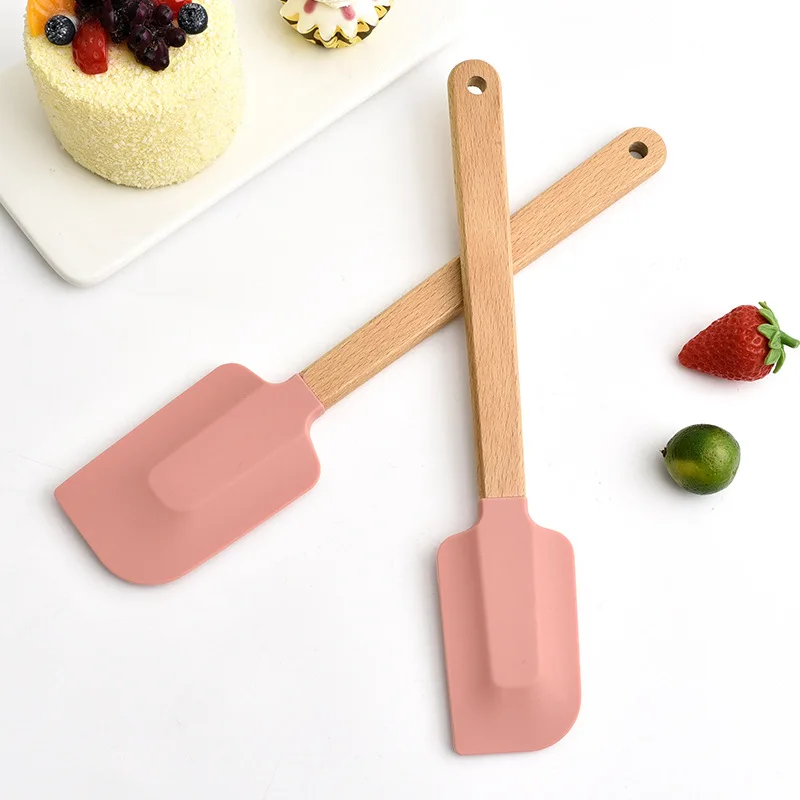 The 2Pcs Set White Silicone Cream Spatula is an essential tool for any baking enthusiast. With its non-stick surface and comfortable wood handle, it is perfect for mixing, spreading, and scraping ingredients with ease.
