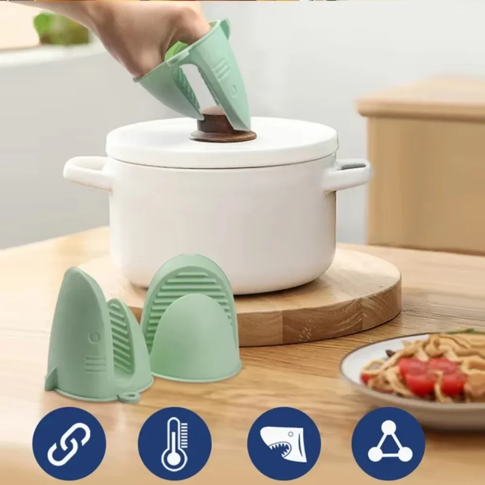 Silicone Oven Mitts Set 2pcs Shark Shaped Heat Resistant Kitchen Gloves