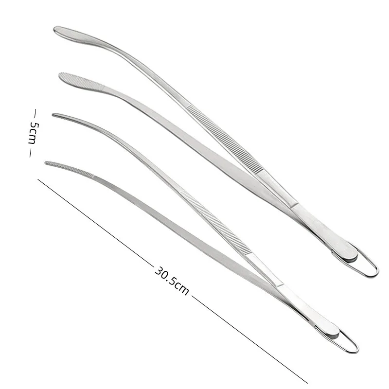 12 Inch Stainless Steel Cooking Tweezers Set 2Pcs Kitchen Food Tongs