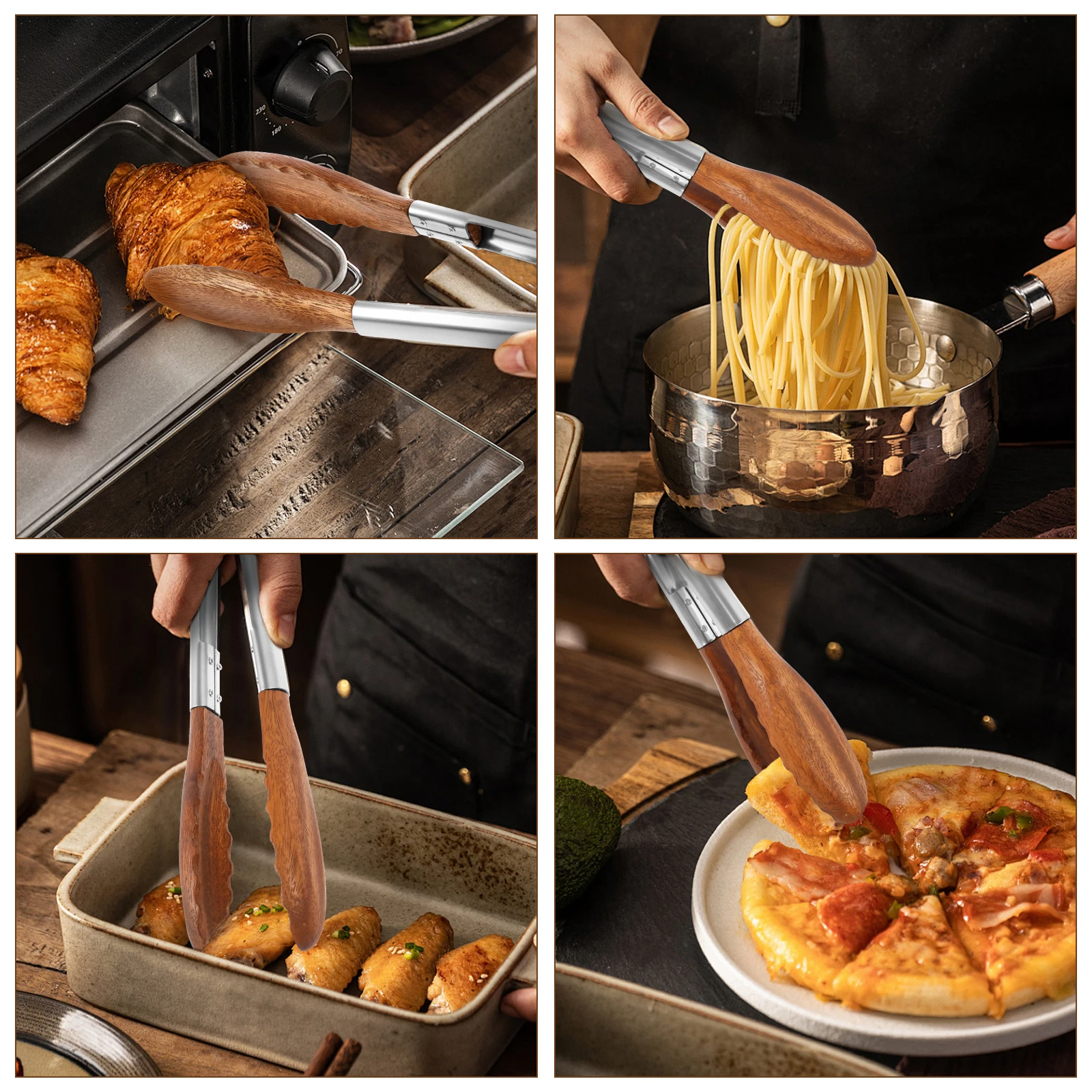 - Durable Construction: Made from high-quality treated walnut and stainless steel, these tongs are sturdy, rust-resistant, and easy to clean.